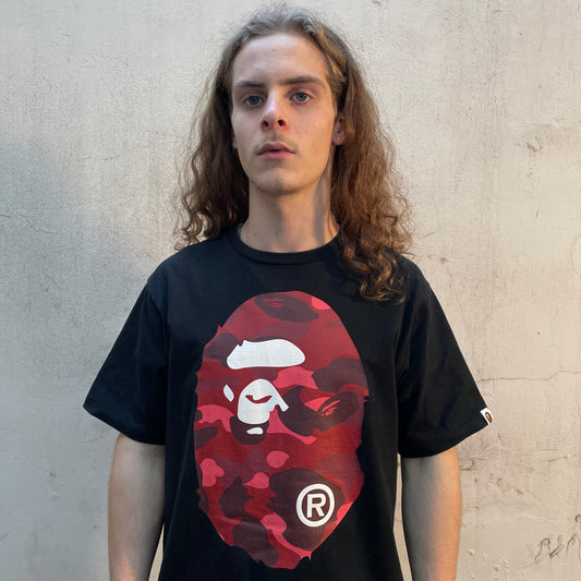 Déjà adoptéT-shirt noir Bape Ape Head Camo rouge - L